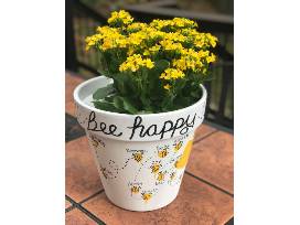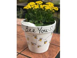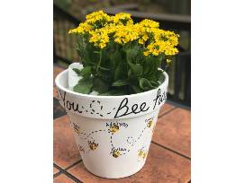 Kindergarten Class Project! This adorable bee planter (11" tall and 12" wide) has thumbprint bees on it with each kindergarten student's name and a great message. They grow soooo fast! Cherish this age for a long time with this planter!