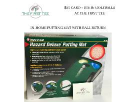 Practice your put at home with your own Hazard Deluxe Putting Mat. It has an efficient ball return channel that ensures a perfect return every time. It even has a bunker and water hazard that helps to increase putting accuracy!