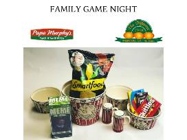 Grab your official popcorn bowls (with salt and seasoning shakers) and snacks and gather around to play a hilarious game-The Awesome Game of Meme (For 3 to 6 players, ages 14 & up)! Enjoy 3 two pound bags of hand rolled pretzel bites from The Different Twist Pretzel Co. and a Complete Family Pizza Night from Papa Murphey's Pizza!