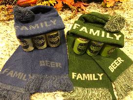 2 Scarves and 2 Beenie hats with 2- 6 packs of beer
