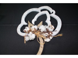 This beautiful rustic wooden cotton décor is perfect for your home! Also includes a lucky horseshoe with authentic barbed wire and cotton boll. Both handcrafted by Ashley Culver. Wood item is at 22" tall and 15" wide. May be picked up at Agricenter office, 8/11-8/14, from 10 am till 2 pm.