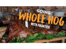 Invite your friends over for a Frontier full pig party served with mac & cheese, salad, rolls and veggies. In addition, enjoy a Whistlepig basket including wearables and a bottle of Piggyback and Boss Hog