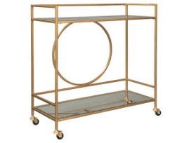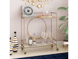 Cheers to this simply chic bar cart. Clear glass tabletop and shelf infuse a floating-on-air quality. The sleek metal such an upscale look and feel.