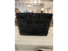 Loxwood Shopper Shoulder bag in Black. This wide shopping bag is made of premium real leather. It is ideal for the office or for shopping trips during the day. Matching leather tassel. Snap fastener.