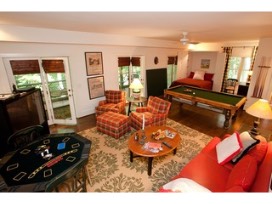 Entertain the night away with a full entertainment suite and additional bedroom that includes a flat screen TV, pool table, Ping-Pong, game table. French doors open up to a second screened porch with a private path leading to Big Creek.