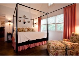 The main level houses two private suites that share a large bath. The king suite is situated on the second level and includes a full bath, office, dressing room/nursery, and two walk-in closets large enough for a pack-n-play. Enjoy the bright, airiness of the room that is accentuated by the vaulted ceilings.