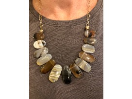 Montanna Agate Necklace with 14K Gold Fill by English Norman of ESN Artisan Jewelry. English Norman is an incredibly talented jewelry designer and craftsman. She loves color, texture, and change. English's lifelong love of color pervades her unique, brightly colored hand smithed jewelry crafted of Argentium silver, 14K gold fill, and faceted semi-precious stones. Check out more of her work at www.englishnorman.myshopify.com