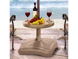 Featuring an aluminum frame with rich grey finish. Enjoy the great versatility of the Shademobile Rolling Umbrella Base combined with a table accessory to hold your drinks and snacks! The movable umbrella stand rolls on 4 wheels with no tipping required, and locks into place!