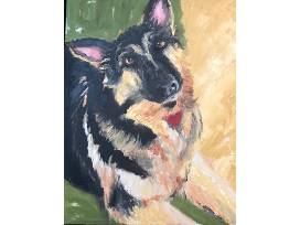 This is "Sunny" a German Shepherd depicted beautifully in acrylic on canvas. She was rescued by the artist Amy Jones back in 1980.