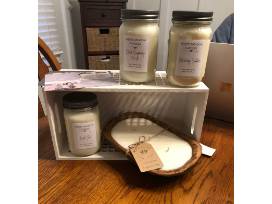 White Meadow Candles is offering this hand crafted one of a kind 9x5x2 "Cashmere Plum" 3 wick Dough Bowl Candle that is poured with 100% soy wax and the finest fragrance oils. Also included are three 16 oz hand poured 100% soy wax jar candles in scents of "High Tide", "Black Raspberry Vanilla" & "Blackberry Cobbler". If you love candles, this item is 100% for you!