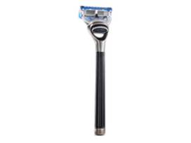 Properly weighted and balanced handle acts as a natural extension of your hand to help minimize the need to place pressure on the face. Matte black finish with fluted metal gripping provides a clean, masculine style. High quality nickel plated accents add classic details to a modern handle.