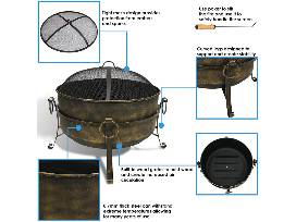 LARGE SIZE: Perfect to fit many people around for a bonfire in the patio, yard or garden; Overall 34 inch diameter x 23 inches high; Outside fire pit bowl is 16 inch tall x 34 inch diameter, weighs 28 pounds