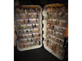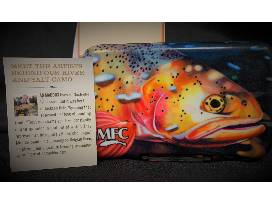 1 fly short of hundred. This MFC artist rendition fly box contains a variety of hand tied flies, that were tied by both disabled veteran participants and volunteers with the Ft. Belvoir Project Healing Waters Program. The artwork on the fly box was the inspiration of Nashville native Ad Maddox. Add to your line a one of a kind tied fly that will give you luck on every cast in support of the cause!