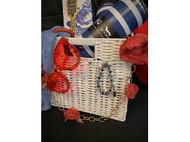 Centerpiece Boutique and Design presents a basket full of fun specialty items including a super soft cashmere wrap, perfect for travel and will compliment any outfit. Other items include a selection of accessories: Erimish stackable bracelets perfect for layering, heart-shaped sunglasses, cute red ball cap, artistic flower necklace by Dennis & Charles and Teleties strong-grip/no-rip hair ties. To add to your weekend fun two stainless steel insulated tumblers by Swig Life are included as well as a luxurious White Coral Diffuser by Seda France.