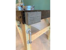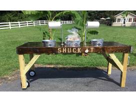 This impressive oyster shucking table, handmade by Century 21's Ray Curtis, almost speaks for itself! Perfect for any seafood loving host, this heavy-duty piece of construction stands tall at 3 feet high and 8 feet long and is made easily portable with two sturdy wheels. In the middle you'll find two metal buckets for holding shells, two paper towel holders, and additional containers on each side for utensils or napkins. With sealed wood making it easy for cleanup, you can see just how much time and attention went in to the crafting of this beautiful table.