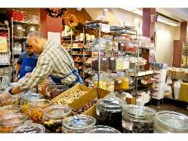 When you first walk through the door, the aroma of fresh spices and Mediterranean cooking envelops your senses and draws you into the bustling atmosphere of this iconic Middle Eastern grocery store. With bins of fine grains and exquisite spices, bulk containers of imported olives, nuts, and dried fruits, old fashioned barrels of coffee beans and the simple ticket dispenser from which customers must "take a number" during crowded times - this feels like an old-world place - and it is. Sahadi's has been doing business in Brooklyn for over 65 years with the original Sahadi's established in Manhattan in 1898.