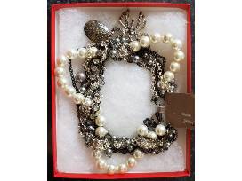 Brand new in box with tag. There's a lot going on with this necklace; large white pearls, small gray pearls, silver chain, black chain, clear crystals and one really pretty butterfly with crystals on one side. Purrfect for a special night out. 18" long.