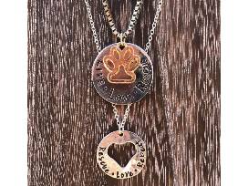 Two necklaces every rescuer should have - one silver with "rescue, love, repeat" and one with "live love rescue" and a gold paw.