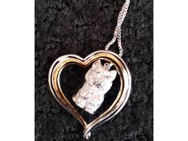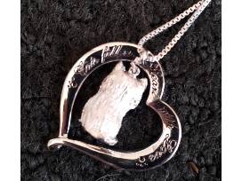 Silver Cat in Heart Necklace