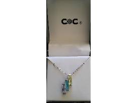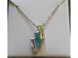 Brand new in box, modern style pretty silver necklace with three crystals, lavender, blue and yellow.