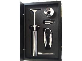 New Air Pressure Wine Cork Popper set includes seal cutter and stopper in silver finish. Boxed in a very nice black wooden box with instructions included. Makes a great gift for any wine lover.