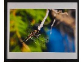 Artist: Susan Gottlieb Dimensions: 21" W x 17" H (with frame) This stunning print features a beautiful dragonfly as she rests upon a branch on a sunny day. One look and you'll be drawn into the incredible detail of her wings against a vivid and colorful backdrop. Photo was taken by Susan Gottlieb, owner of the G2 Gallery.