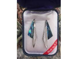 These beautiful laurel leaf earrings are genuine New Zealand paua shell in palladium plate. New in box.