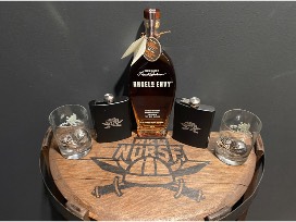 This one-of-a-kind custom NKU Norse Bourbon Bar will look great in your home! We've included four (4) bottles of bourbon and a few accessories to help you get your new bar stocked!