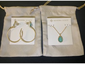 Brighten up your jewelry box with this set! Small Pepper Gold Hoop Earrings in Aqua Illusion with a Matching Pendant Necklace!