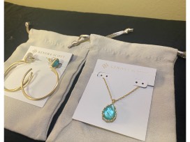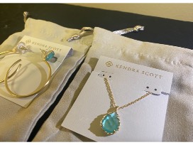 - Kendra Scott 'Macrame Dee' Gold Finish Pendant Necklace in Aqua Illusion on 18" chain