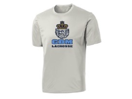 Get in the spirit with CDM Lacrosse gear including a Boathouse logo hoodie, a gray short-sleeved Boathouse performance t-shirt, and 2 car stickers. The hoodie is gray with navy/white logo. All apparel are men's size Large.