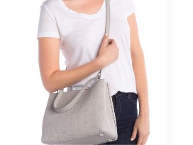 Complete any outfit with this gorgeous "Sara" handbag by MCM with the embossed MCM logo in "Dove Gray" colored-leather.