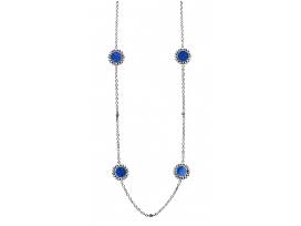 - Lapis stone 34" necklace with Sterling Silver Caviar beading, finished with a lobster clasp.