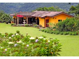 Los Establos boasts magnificent gardens, adventure walks & breath taking views. A winner of TripAdvisor's Travelers Choice Award, the distinctive collections of comfortable suites and accomodations is nestled 4,000 feet above sea level. Spread across 16 acres in the midst of a lush coffee plantation, this charming estate offers panoramic views of Baru Volcano set against Boquete's green mountains, blue waterfalls and rushing rivers. All deluxe accomodations feature marble bathrooms, regional artwork, and private patios, allowing for full enjoyment of the fresh mountain air. Amenities such as flat-screen tv's with satellite, plush bathrobes, and Wi-Fi ensure modren comforts coincide with Mother Nature's magnificence. Stroll along secret paths as you breathe in the aroma of coffee abd the perfumes of the region's lush tropical gardens. Choose from daily activities, including a panoramic rainforest tour, coffee plantation tour, bird watching at Paradise Gardens, hiking to the Lost Waterfalls, zip-lining through the rainforest, river rafting on the Chiriqui River, walking along hanging bridges, Cangilones River tour, honey bees tour and spa treatments.