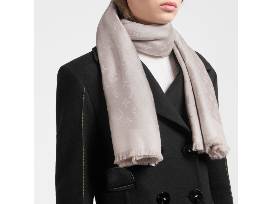 The Louis Vuitton Classic Monogram shawl is woven of a soft silk-and-wool blend. Inspired by House travel blankets, it features a jacquard LV pattern and "Louis Vuitton" signature. Generously sized, it envelops the wearer in lightweight warmth. The fabric is deep-dyed for luxurious color. A wardrobe essential, it can be styled in a host of ways and makes a welcome gift. Shawl color is Greige.