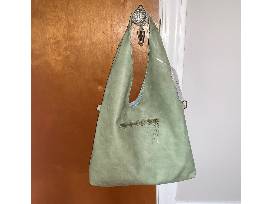 Add this beautiful bag to your collection. In mint OR sky blue- you pick the color! Approximately 19"L and 15" wide. 9" handle drop. Includes interior pouch and strap.