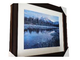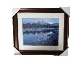 1Beautiful Pond & Snowy Mountain Wall Art with premium custom frame measuring 34.5"x30.5".