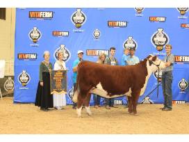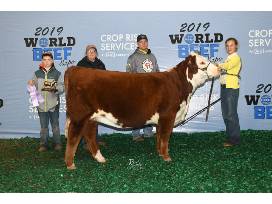 Mason really wanted to keep this one! BACC Hadley 612 is quickly becoming one of our top donor females. She was Res Division Champion behind Georgia Kay at the Jr National, Reserve at Houston and Supreme Champion at Saddle & Sirloin and Heart of Texas. Her first natural calf was Res Champion at the world beef Expo for the Boatman Family. Her Flush by KJ Contender was truly amazing and we will sell several more in our next sale. If you like good cattle, you will like this one. 973 is has the look, rib and structure that we all strive to produce with the show ring presence and hair that can put one over the top. If you don't believe me ask Chad Oates.