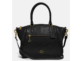 Elise Satchel. Based on a best-selling Coach design, the Elise satchel is the perfect bag for everyday. With a convenient exterior zip pocket accented with a Signature charm and interior pockets to keep everything organized, it's crafted of polished pebble leather. Carry by the top handles or attach the adjustable strap and wear it crossbody.