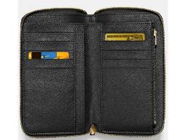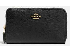 Medium zip around wallet. Crafted in durable crossgrain leather, this wallet unzips for easy access to its well-organized interior. Ten card slots, a full-length bill compartment and a zip coin pocket keep everyday essentials neatly tucked away.