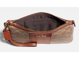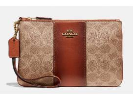 Small Coach wristlet in colorblock signature canvas - Crafted in our Signature canvas with colorblock leather trim, this wristlet is perfectly sized for cards, cash and a phone. Wear it on your wrist or clip it inside a larger Coach bag.