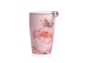 Our limited-edition Jardin Collection brings forth an elegant assortment of organic teas curated in collaboration with Tea Forte. With designs hand-picked from NYBG's collection of rare floral prints, this double-walled ceramic tumbler and integrated stainless steel infuser makes steeping loose tea by the cup simple. The innovative double-wall construction keeps the tea hot and the tumbler cozy to hold. Add the lid to your cup while steeping. When done, remove and use as a tray for your infuser basket.