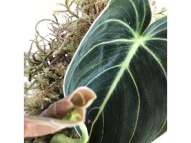 One of the most desirable of all philodendrons, Philodendron melanochrysum has velvet black-green foliage with contrasting light-green veins some of the most beautiful of all vining aroids. Endemic to Colombia it is still a rarity in cultivation and highly sought after by collectors. It grows best when allowed to climb on a totem or other structure and over time a mature specimen with many leaves is absolutely beautiful. Despite its exotic appearance it is not difficult to grow even as a houseplant.
