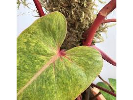 Variegated and colored leaf philodendrons are all the rage right now in houseplant collector circles. This classic variegated cultivar is a perfect choice for the collector or beginner because of its ease of growth and wonderful colored and patterned foliage. Philodendron 'Painted Lady' has light-green leaves splashed with gold, offset with pinkish-red petioles and stipules on the stems adding to the colorful display on this slowly climbing and branching variety. It is a cultivar that has been around for a while but still is popular with collectors for good reason.