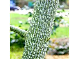 Acer tegmentosum is an Asian relative of our native striped maple, Acer pensylvanicum. Manchurian striped maple is a low-branching small tree that reaches 20-30' tall and 15-25' wide. It has attractive eight-inch-long yellow and green flower clusters in mid-to-late spring, and its green lobed leaves turn a lovely golden yellow in autumn. However, this tree's claim to fame is its boldly colored and patterned bark. Twigs emerge a shiny blue-green and develop a white vertically striping pattern on the second year's growth. This bark pattern becomes more prominent with age and brightens each winter. This maple is hardy to Zone 5 and prefers a partly sunny to partly shady location in a garden. The green and white striped bark of this lovely maple makes it a stunning specimen year-round!