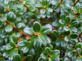 As a member of the familiar genus, Vaccinium, that includes blueberries, cranberries, and huckleberries, this low, compact shrub has year-round ornamental appeal. Pink buds open to small white bell-shaped flowers that turn into deep blue-black edible berries. Delavay's blueberry has tough leathery evergreen leaves that offer winter interest. Native to Myanmar and south-central China, it is noted as hardy to Zone 7 but may likely be even hardier. Like other blueberries, it prefers acidic soil. This diminutive plant that would be right at home in a rockery or alpine garden.