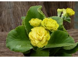 Showy Double Auriculas (Group of 3) / Size: 5" clay pots