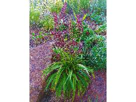 This dwarf veratrum is a 2nd generation, wild-collected specimen from the mountains of Taiwan. Panicles of deep, dark-burgundy flowers rise above narrow, sword-shaped, and pleated basal leaves. Barely reaching 2' at maturity, this sweet and uncommon perennial pulls people in for closer inspection. Hardy to Zone 7a, this plant prefers rich, moist soil and part shade.