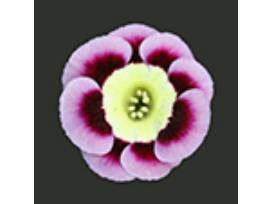 Three gorgeous alpine cultivars of Primula auricula all with gold or pale yellow centered flowers: Primula auricula 'Traudl' (light peach around around a red eye and gold center), Primula auricula 'Newton Harcourt'(light pink around a darker eye and pale yellow center), and Primula auricula 'Sirius' (pale yellow fading to a deep burgundy eye around a gold center). All are choice specimens for the alpine house or cool conservatory.