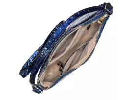 Featured in Maritime Melbourne, a dynamic mid-tone blue with a glossy finish, inspired by the ocean. Genuine croc-embossed leather.
